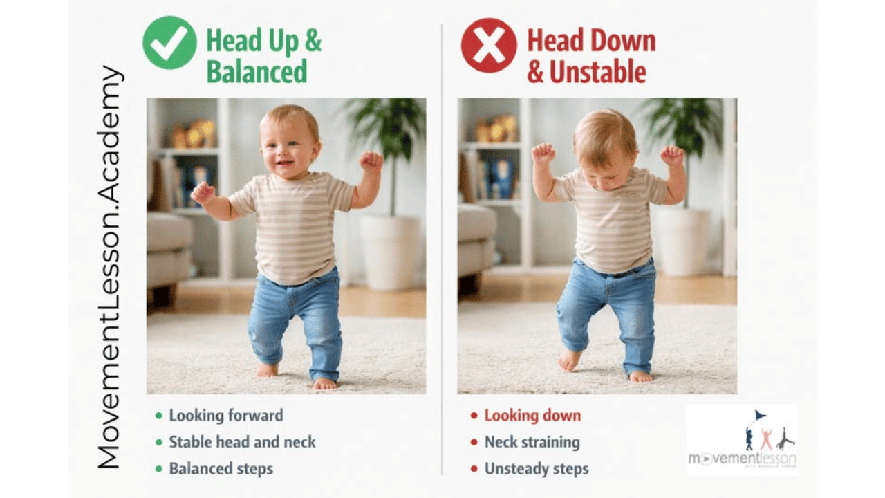 Most people think a baby is afraid when they lift their hands and look down while walking.
